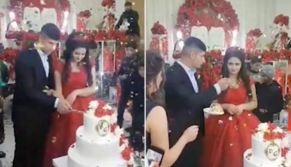 ردة فعل صادمة من عريس بعد أن فشل في تقطيع تورتة الزفاف