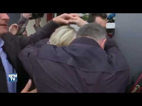 المرشحة الفرنسية المتطرفة مارين لوبان في موقف محرج.. تتعرض للرشق بالبيض (قيديو)