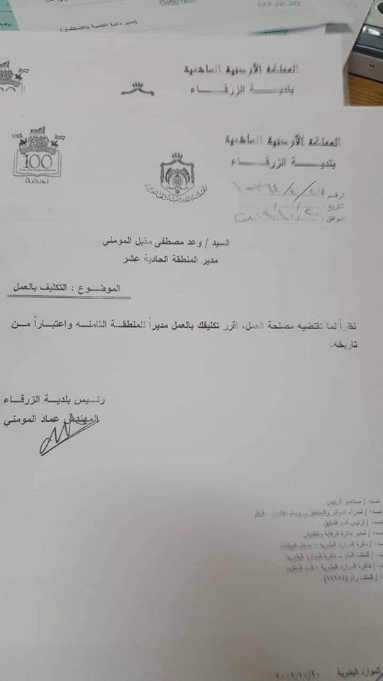 رئيس بلدية الزرقاء يعين شقيقه مديراً