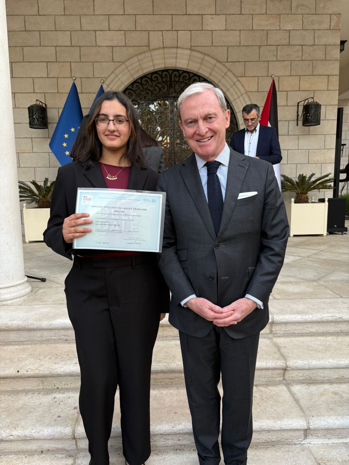 للمرة الثانية السفير الفرنسي في عمان يكرم الطالبة لمار الراميني لتفوقها في امتحان اللغة الفرنسية