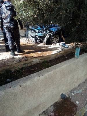 بالصور ..مركبة تخترق شقة في شارع الاستقلال