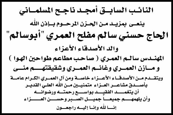 النائب السابق المسلماني يعزي بوفاة الحاج حسني العمر