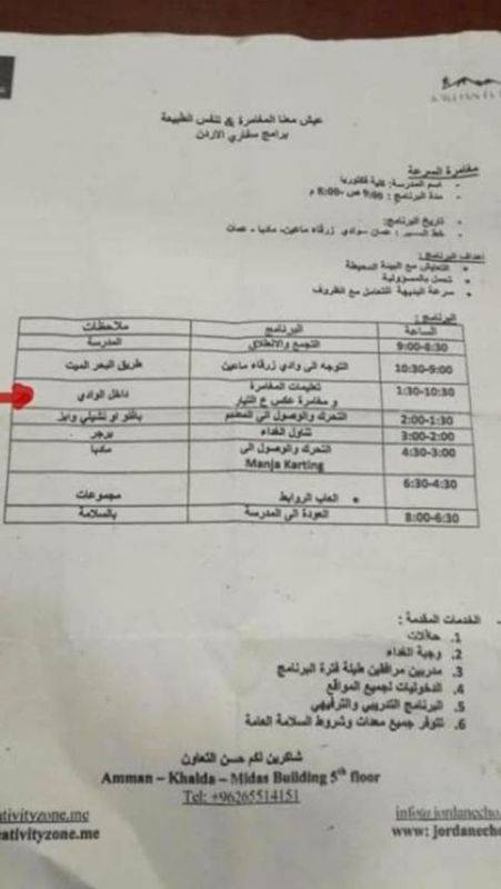 وزير التربية والتعليم يكذب على الشعب الاردني بحادثة البحر الميت " وثائق "