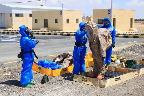 بالصور .. "الاسد المتأهب" تجري تدريباً على التعامل مع هجوم "كيماوي"