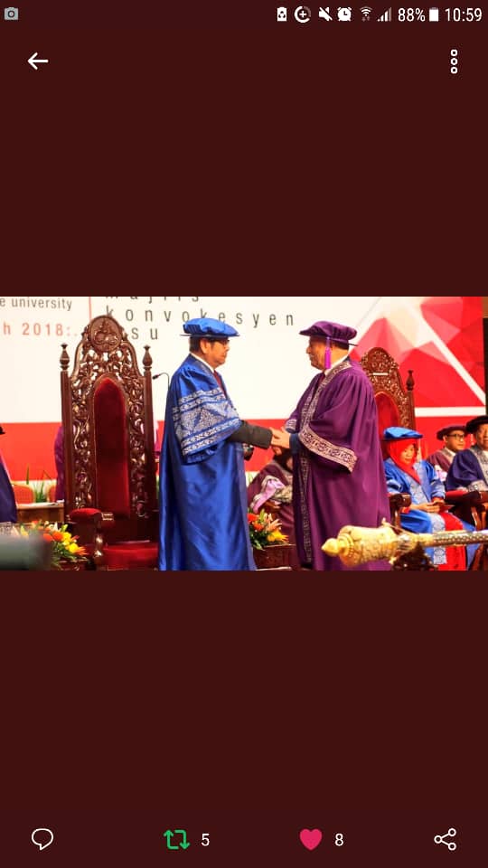 الدكتور ابو عرابي يكرم بالدكتوراه الفخرية بحقل القيادة والادارة والتعليم من ماليزيا