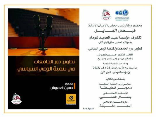 إشهار كتاب "تنمية الوعي السياسي في الجامعات" د. حسين العموش