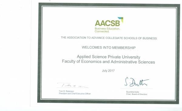 كلية الاقتصاد والعلوم الادارية في "العلوم التطبيقية" تحصل على شهادة العضوية من مؤسسة AACSB