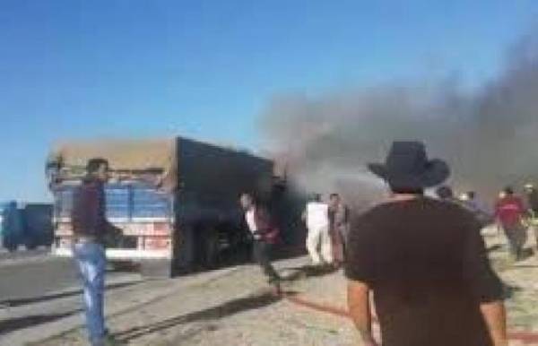 احتراق شاحنة محملة بالاسمنت على الطريق الصحراوي