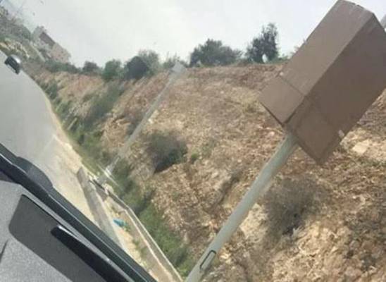 كرتونة على رادار سرعة في السلط لمنع الكاميرا من التصوير