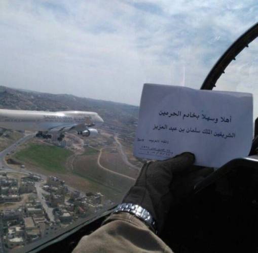 طيار أردني يخط رسالة ترحيب بالملك سلمان فوق السحاب