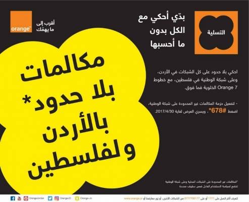 Orangeالأردن تطلق عرض المكالمات الدولية على شبكة "الوطنية" فلسطين لإبقاء زبائنها على تواصل دائم