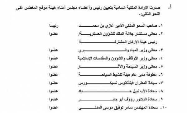 إرادة ملكية بتعيين مجلس أمناء المغطس
