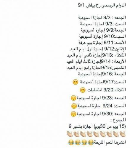 شهر 9 شهر الاجازات