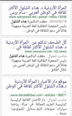 الشلول سيدة أردنية تتصدر المواقع العربية في مجال الثقافية