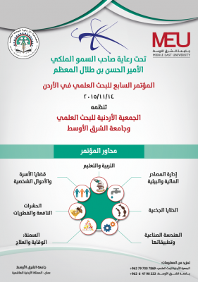 المؤتمر السابع للبحث العلمي في الاردن تنظمه الجمعية الاردنيه للبحث العلمي وجامعة الشرق الاوسط