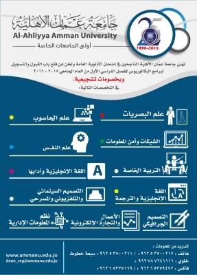 جامعة عمان الاهلية تهنىء الطلبة المتفوقين في الثانوية العانه وتفتح باب التسجيل