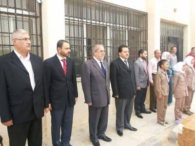 مدير تربية الزرقاء الثانية الدكتور رشيد عباس ومدير اوقاف الزرقاء ياضران عن نبذ العنف في مدرسة دوقرة الثانوية للبنات ويشاركان طالباتها طابورها الصباحي