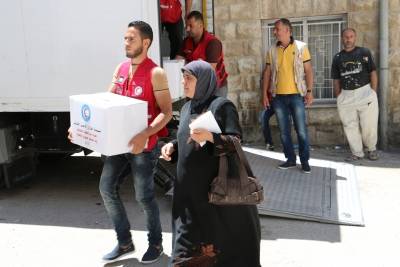 الهلال الاحمر الكويتي يوزع 2500 طرداً غذائيا على اللاجئين السوريين.