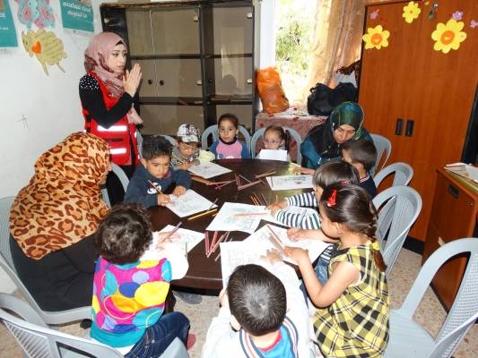مركز الهلال الاحمر الاردني لتنمية المجتمع ينفذ جلسات دعم نفسي للاجئات السوريات في حي نزال.