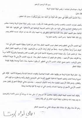 اللجنة الوطنية الأردنية تنعى اسرة الشهيد البطل الكساسبه