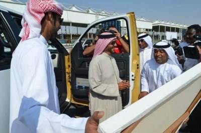 سمو الشيخ سرور بن محمد آل نهيان يوقع عمل لفنان أردني أثناء تفقده مهرجان الظفرة