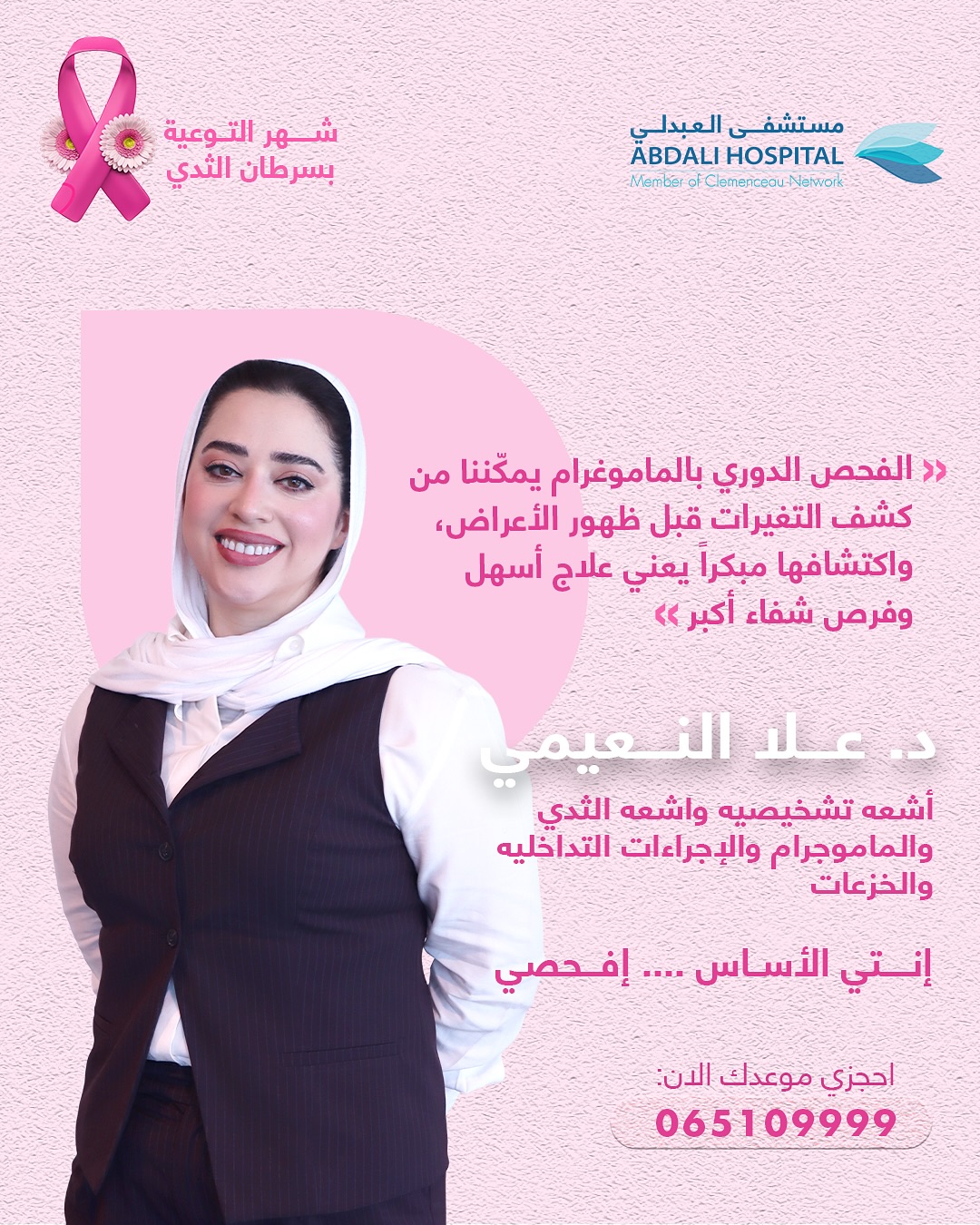 من مستشفى العبدلي ، الدكتورة علا النعيمي للسيدات: الفحص المبكر أفضل وسيلة للحماية