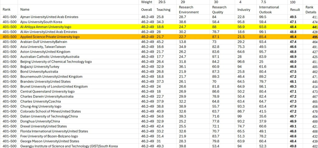 عمان الأهلية تفوز بالمركز الأول على الجامعات الأردنية و 401 -500 عالمياً بتصنيف التايمز العالمي لعام 2026