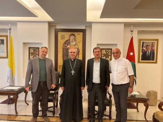 النائب الدكتور هايل عياش والنائب عمر النبر يلتقيان سيادة المطران جمال خضر في الاردن