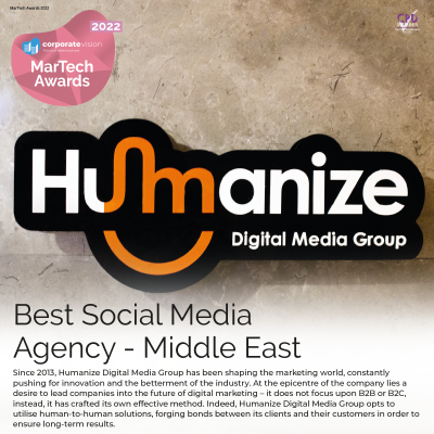 مجموعة “Humanize” تفوز بجائزة أفضل وكالة لإدارة مواقع التواصل الاجتماعي على مستوى الشرق الأوسط لعام 2022