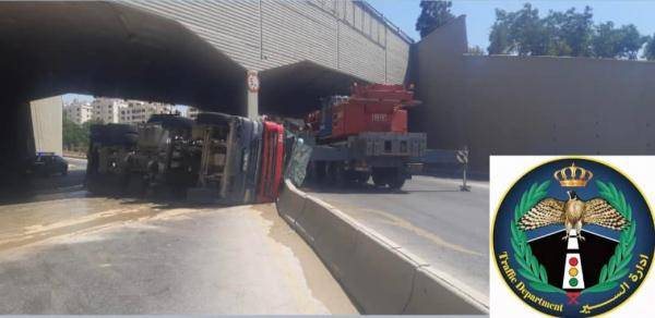 تحويل السير من جسر ابونصير باتجاه الشمال اثر تدهور "خلاط باطون"