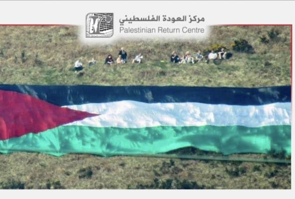 مركز العودة يبسط علم فلسطين بطول 100 متر على تلال "الجبل الأسود" في بلفاست