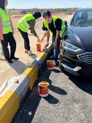 فريق العمل التطوعي يشارك في طلاء أرصفة الجامعة الخارجية
