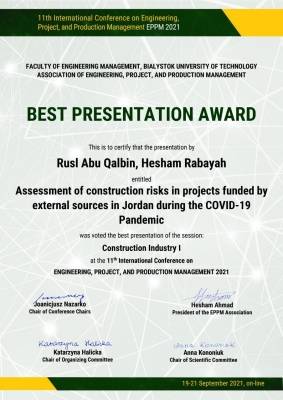 طالبةٌ من قسم الهندسة المدنية بالجامعة تفوز بجائزة أفضل عرض تقديمي لورقة بحثية