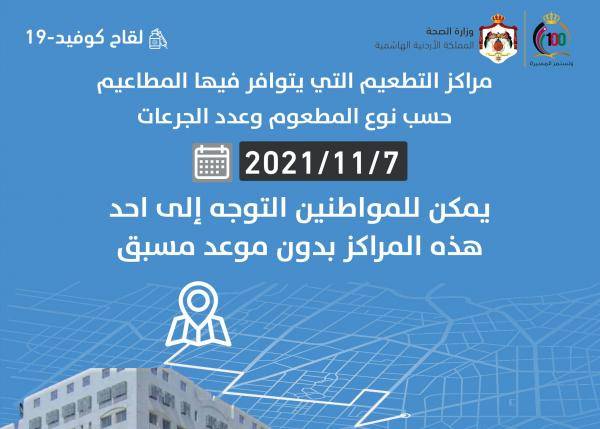 مراكز تطعيم كورونا وفق انواع اللقاحات ليوم الاحد (اسماء)