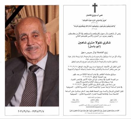 آل شاهين وآل دعيق ينعون فقيدهم شكري نقولا شاهين