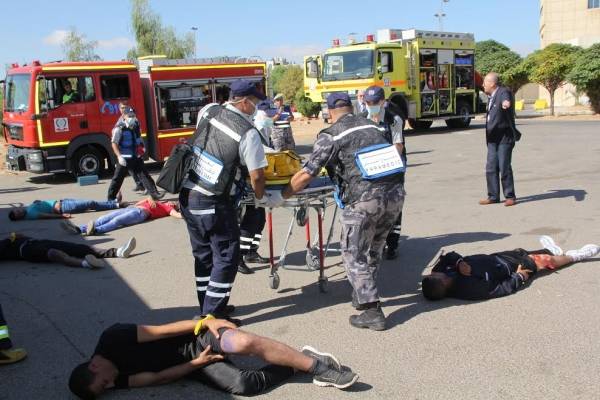 تمرين وهمي لإخلاء محاصرين بمستشفى الزرقاء الحكومي اثر اندلاع حريق