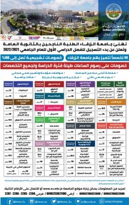 جامعة الزرقاء تهنئ ناجحي الثانوية العامة .. وتعلن بدء التسجيل للفصل الدراسي الأول