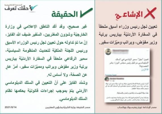 الحكومة تنفي تعيين نجل سمير الرفاعي ملحقاً في سفارتنا بباريس