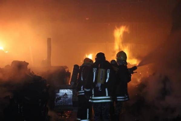 حريق منجرة ومستودع فحم في سحاب (صور)