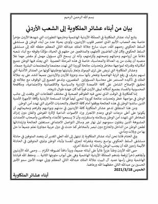 الملكاوية يحيون الملك لأنه كان أول الغاضبين دفاعاً عن أرواح الأردنيين ويدعون الأردنيين إلى الوقوف مع الوطن ضد دعاة الفوضى والفتن والأجندات المشبوهة