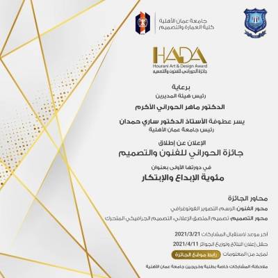 عمان الاهلية تطلق جائزة الحوراني للفنون والتصميم