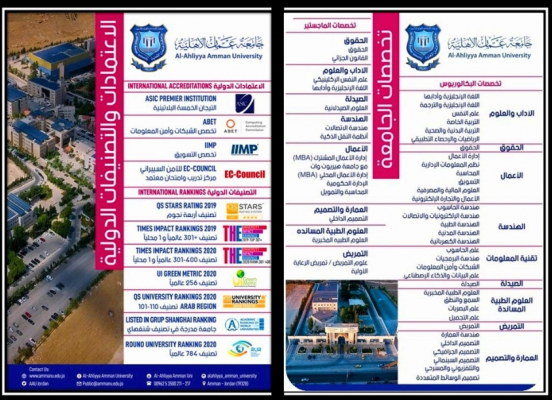 عمان الأهلية تعلن عن استمرار القبول والتسجيل لدرجتي البكالوريوس والماجستير للفصل الدراسي الاول للعام الجامعي 2020-2021