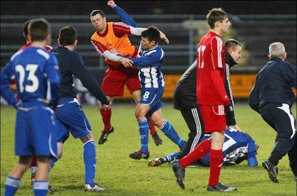 بالفيديو: ملعب يتحول إلى ساحة للمصارعة في بيرو