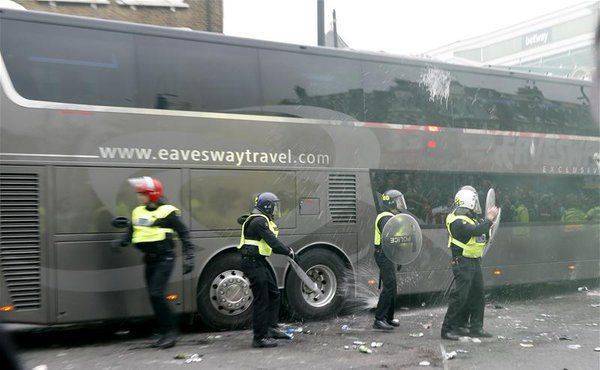 جمهور وست هام يعتدي على حافلة فريق مانشستر يونايتد