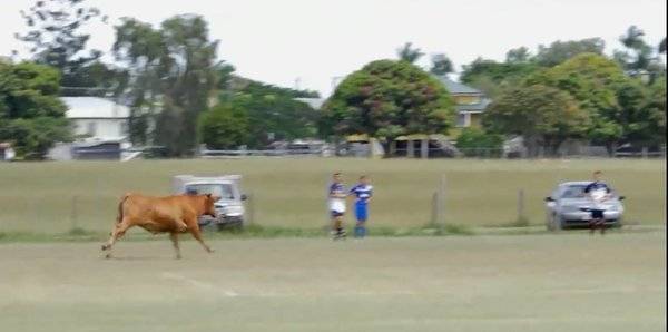 بالفيديو.."بقرة" تقتحم مباراة فى دورى الهواة بأستراليا