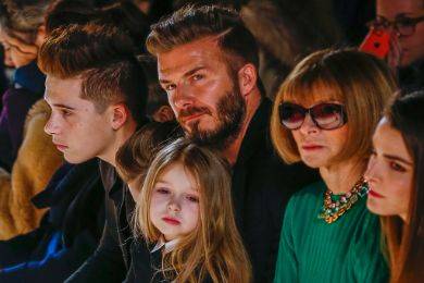 صور.. ابن بيكهام يسرق ملابس والده ويظهر بها أمام الكاميرات