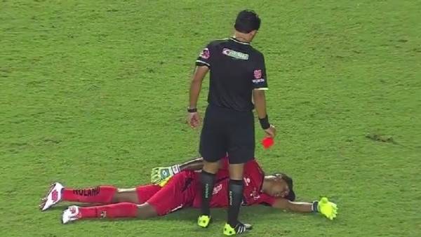 بالفيديو ... حارس برشلونة الإكوادوري يدعي الموت ليتجنب البطاقة الحمراء