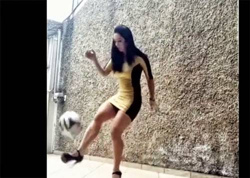 شاهد.. فتاة تتحدى «كريستيانو رونالدو» بـ«كعب عالي»