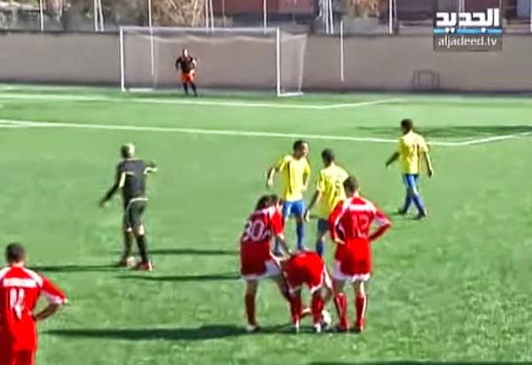 بالفيديو… “حكم لبناني” يتعرض للشتم والضرب على أرض المعلب