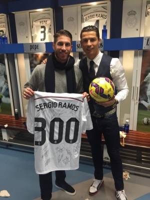 صورة .. لاعبو ريال مدريد يحتفلون براموس ورونالدو